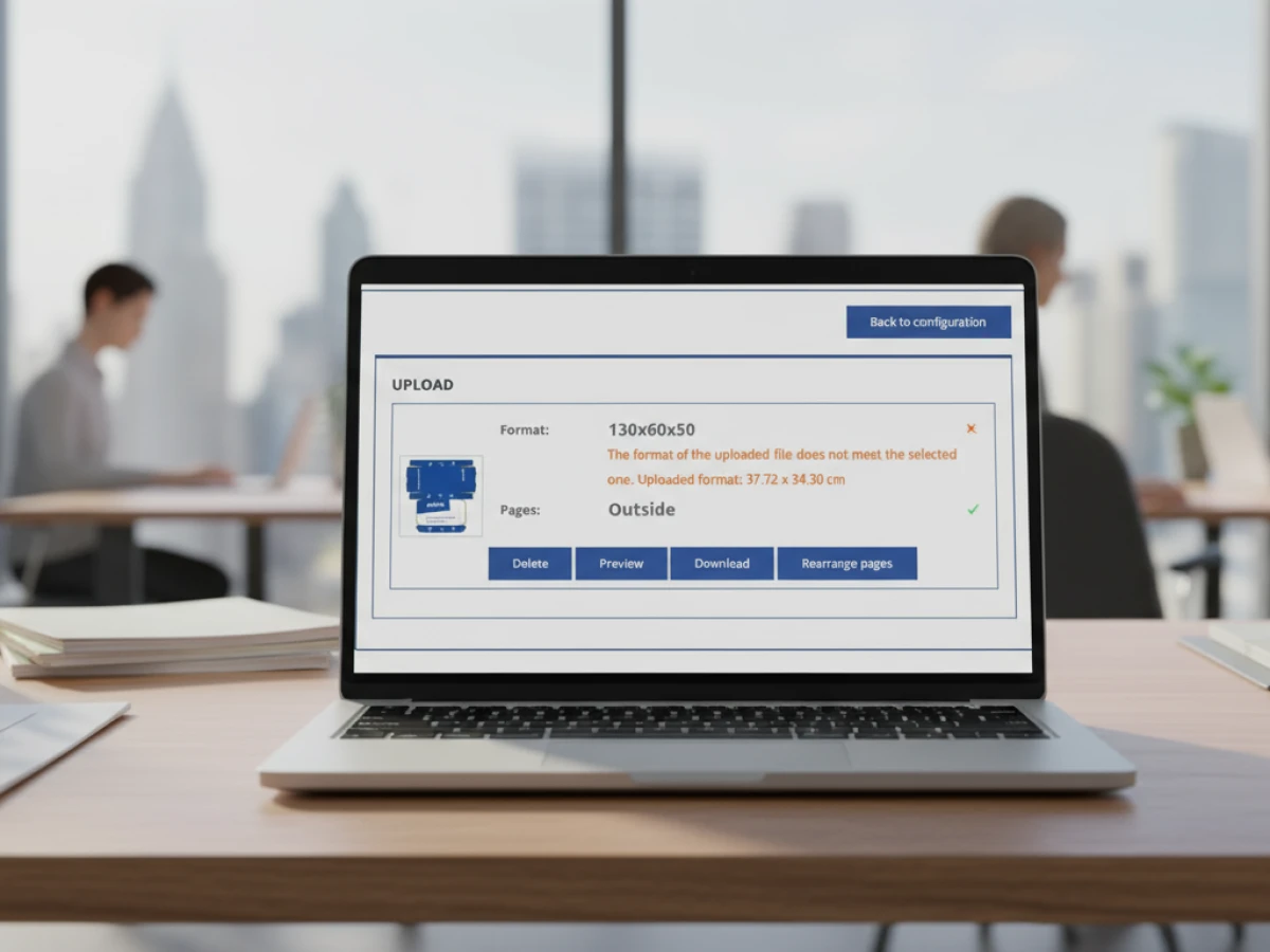 Préflight : Enfin, le PDF est envoyé au préflight. Les profils couleur sont ajustés, le fond perdu contrôlé et un PDF prêt à imprimer est généré.
